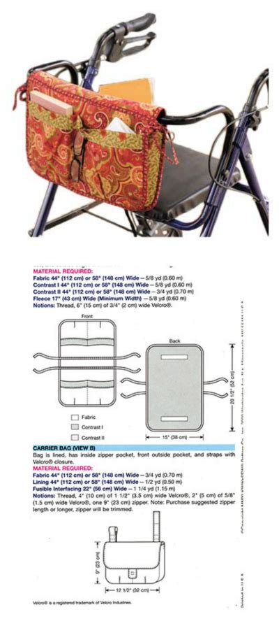 5 diy fabric walker caddy free sewing patterns. Caddy hangs over rail, has fleece inner lining, velcro® closure on back, pockets,and ties. The carrier bag is lined, has a zipper pocket, front outside.