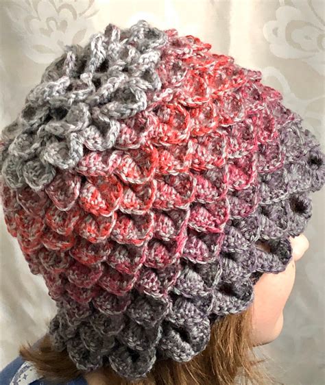 Sylphie croc stitch hat / dragon hat. The resulting pattern appears like dragon scales cascading down. Not the actual hat itself ***☽ buy 3 patterns and get 20% off with coupon code 3patterns ☾☽ buy 5 patterns and get 30% off with coupon code 5patterns.
