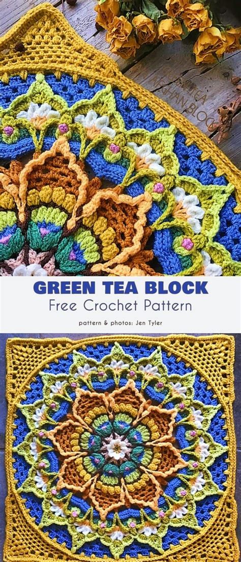 Green tea block by jen tyler is a very beautiful pattern which happens to be easier to crochet than it looks. The high tea floral block. If you want to amaze everyone around with your fabulous taste and impressive crochet skills, this pattern is exactly what.