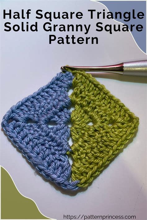 The half square triangle is a two tone diagonal granny square that is a modern crochet version of this classic quilting technique. This triangle forms a half square version of the traditional granny square. Vicky pietz from pattern princess.