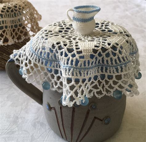 Beautiful crocheted jug covers and cloth edges never go out of style. Gehekelde melkdoilies/crochet milk jug covers. Figural milk jug sits approximately 2.5cm high.