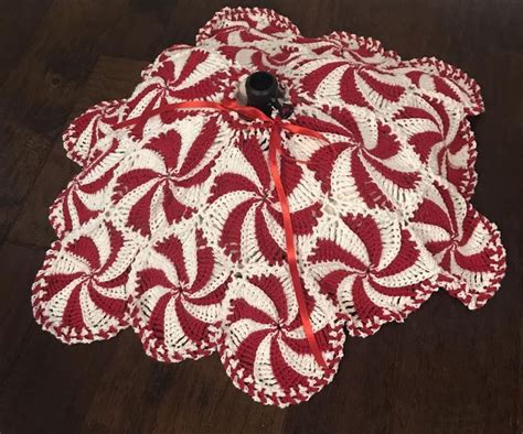 Peppermint Tree Skirt Crochet Pattern. Crocheters have requested this throw be a christmas tree skirt. Crochet peppermint pinwheel christmas tree skirt.