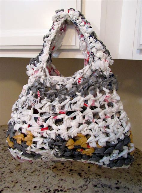 I used the ultimate plarn tote bag pattern to crochet the bag with just some minor changes. Next up on our list of plarn crochet patterns is this cute and beginner friendly tote bag. Bag measures 12 inches wide and 12 inches long with 5 inch handles.