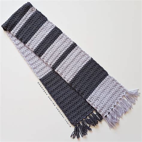 Make a vertical stripe scarf using this free crochet scarf pattern. A free version is also available. Recommended needle size is 20 mm.