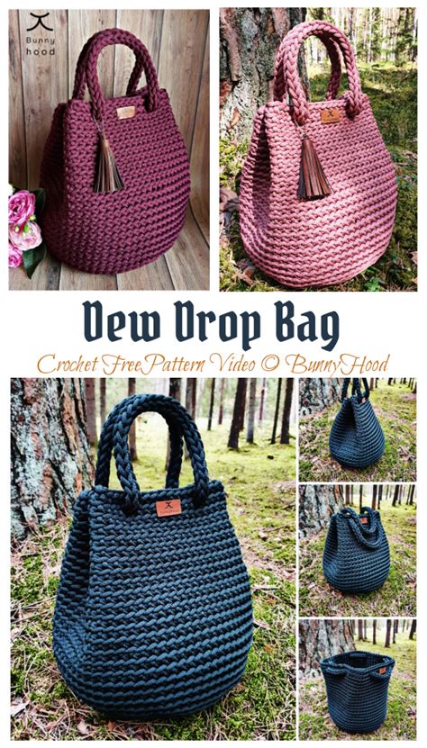 Dew drop bag crochet free pattern [video] dew drop bag is a very easy crochet handbag with beautiful knit looking results! Round bottom diameter ~25 cm (9,8. This bag is very capacious, because of round bottom, therefore it can hold many essential.